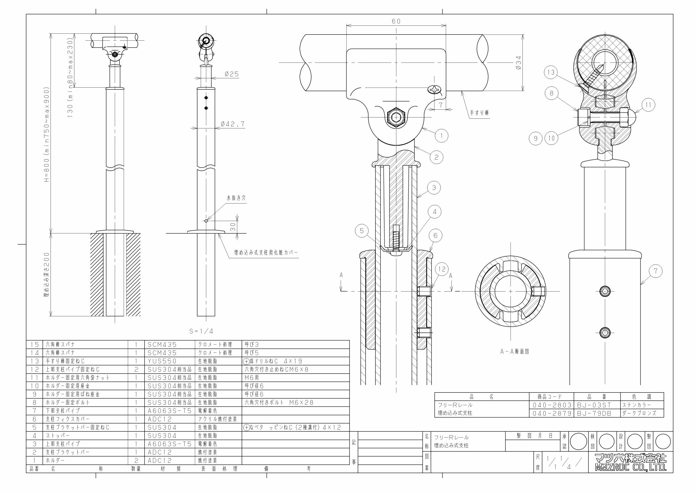 マツ六 フリーRレール 埋め込み式支柱 BJ-03ST ステンカラー【代引き不可】