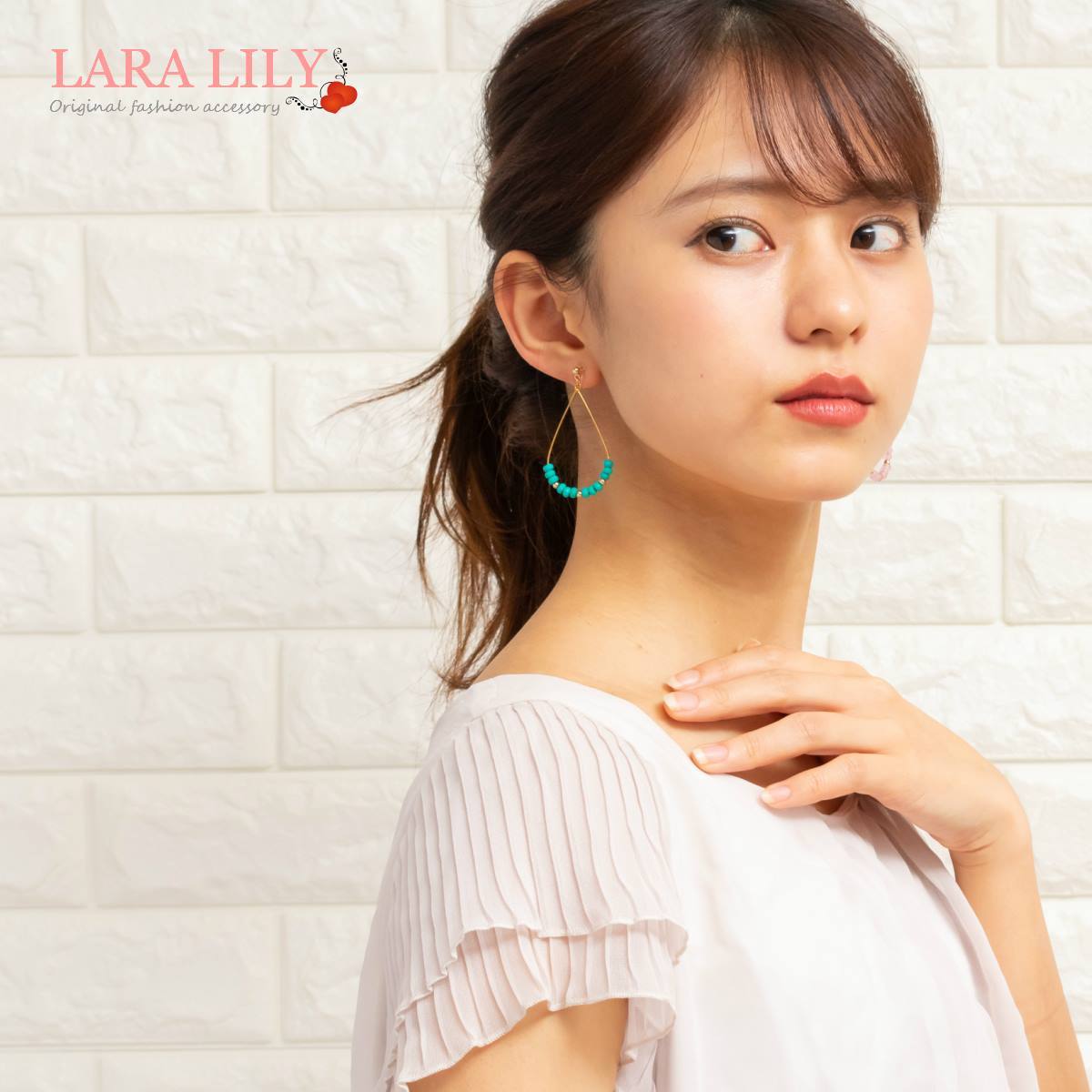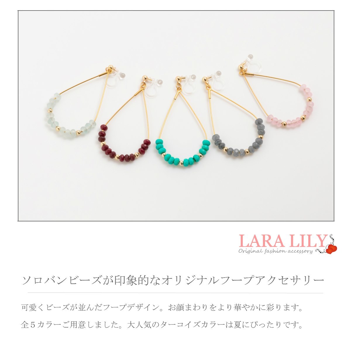 生産地 日本樹脂イヤリング 樹脂ピアス フープ ターコイズ おしゃれ かわいい シンプル 揺れる 樹脂ノンホールピアス スタッド フック ピアス イヤリング レディース 夏 金属アレルギー 安心 Komyu 日本製 無料ラッピング ギフト プレゼント アクセサリー ボルドー グレー ピンク ブルー 大人 上品 サマー カジュアル 結婚式 誕生日 【LARA LILY デザイナーズ作品】 ソロバンビーズが並んだフープアクセサリー。