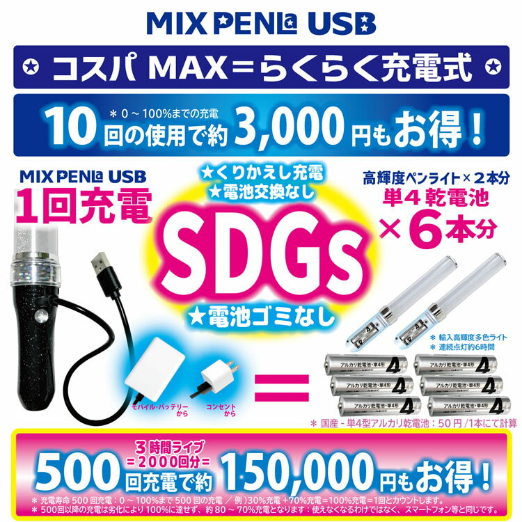 【ポイント10倍】【2本セット】MIX PENLa USB Noir キラキラ スティック WL(ミックスペンラ ユーエスビー)30色 5LED(RGBWY)搭載 超高輝度 充電式(TurnON)ペンライト スティック コンサートライト イベント 結婚式 2次会 パーティー 誕生日