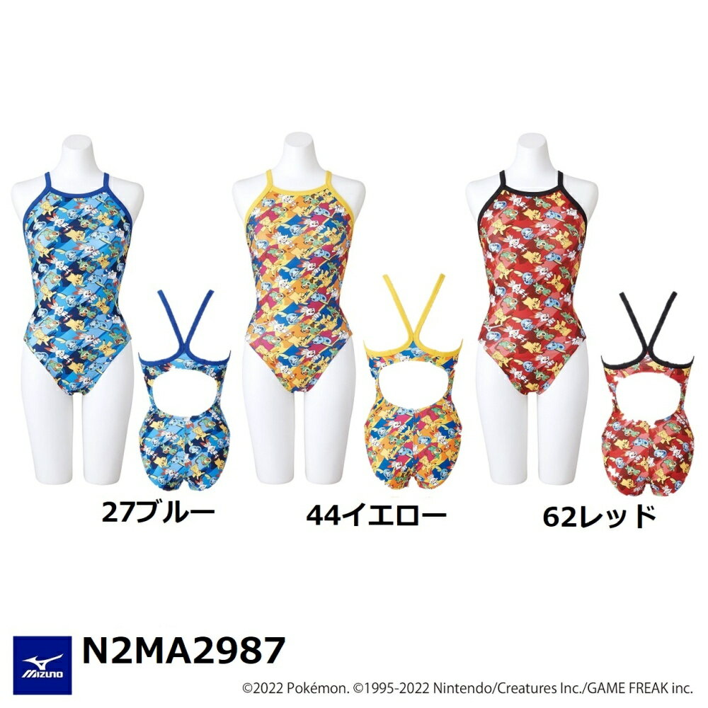 【背面形状:オープンバック】 【レッグ位置:ふつう】 【公式大会使用不可】 【ポケモンデザイン】 カラフルな背景にポケモンたちがぎっしりにぎわうデザインです。